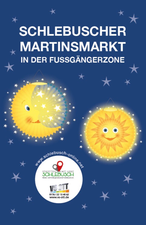 Während des gesamten Wochenendes lockt der Martinsmarkt in die Fußgängerzone von Schlebusch mit Handwerk, Nützlichem und Schönem sowie Speis und Trank. Am Sonntag öffnen die Schlebuscher Geschäfte ab 13 Uhr – eine gute Gelegenheit, bereits schöne Geschenke für die kommenden Festtage zu finden.